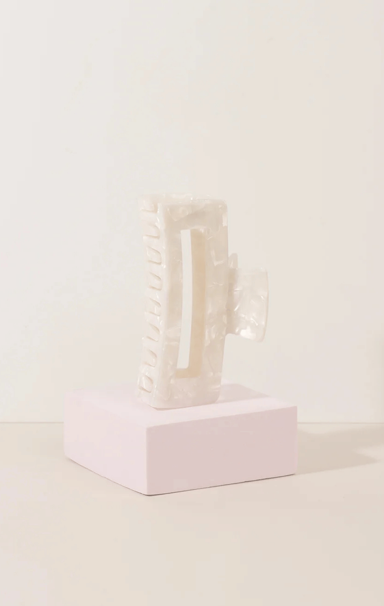 White Marbled Claw Clip - Large: A cute and comfy teen outfit designed for girls who love to stand out. Go bigger, bolder, and better with our White Marbled Claw Clip – made for girls with long, thick, or extra-voluminous hair. This statement clip is crafted from eco-friendly cellulose acetate, offering a strong, unbreakable hold that lasts all day. Always cruelty-free, vegan, and free from parabens, it’s the ultimate must-have for styling with ease and looking cute while doing it. This matching set is perfect for summer days, school hangs, or chill weekends. Made for movement and confidence—this look checks every box.